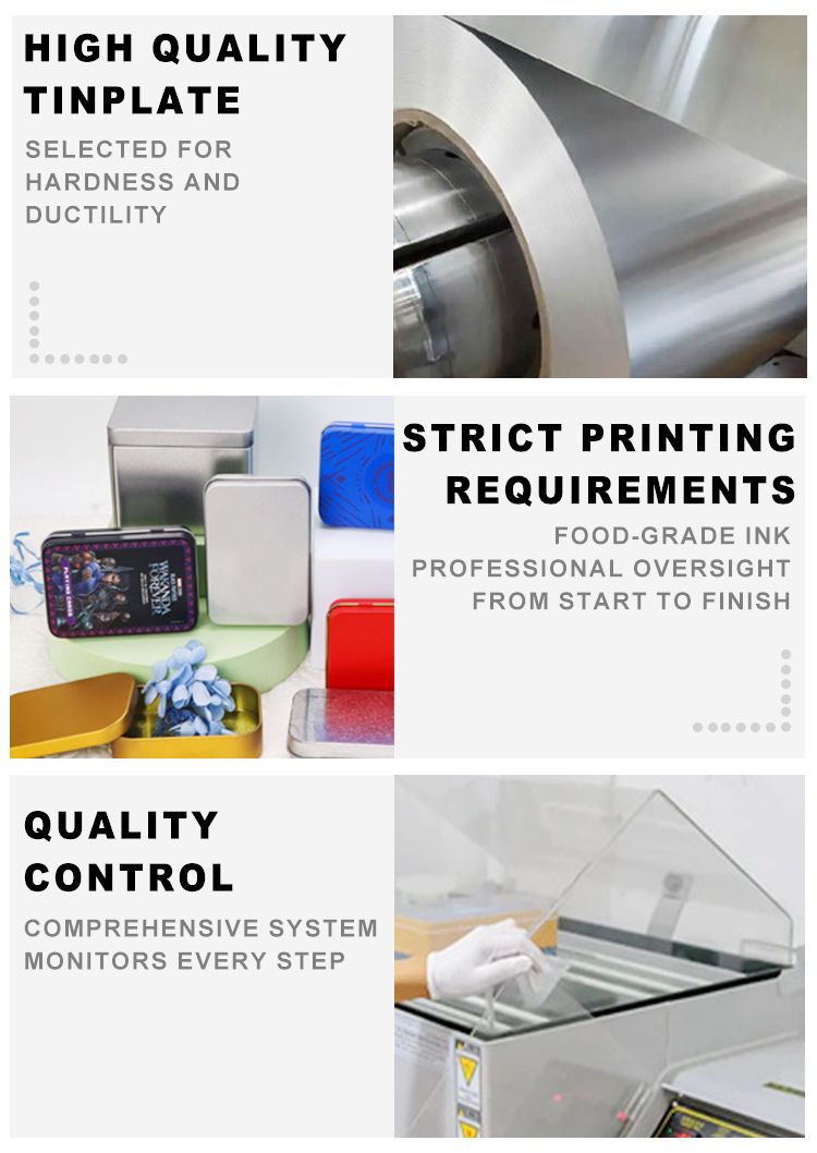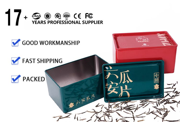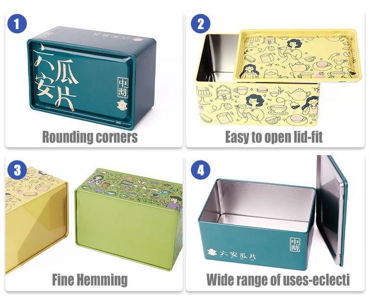 Wholesale custom rectangular food-grade tin cans with logo printing. Airtight, moisture-proof, 100% recyclable. Ideal for tea, coffee, candy & gifts. MOQ 10,000pcs, fast lead time, free samples.