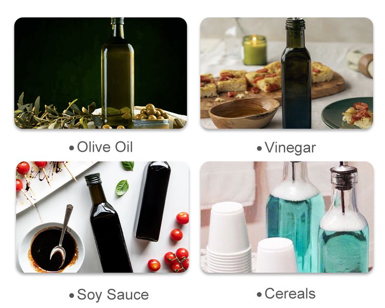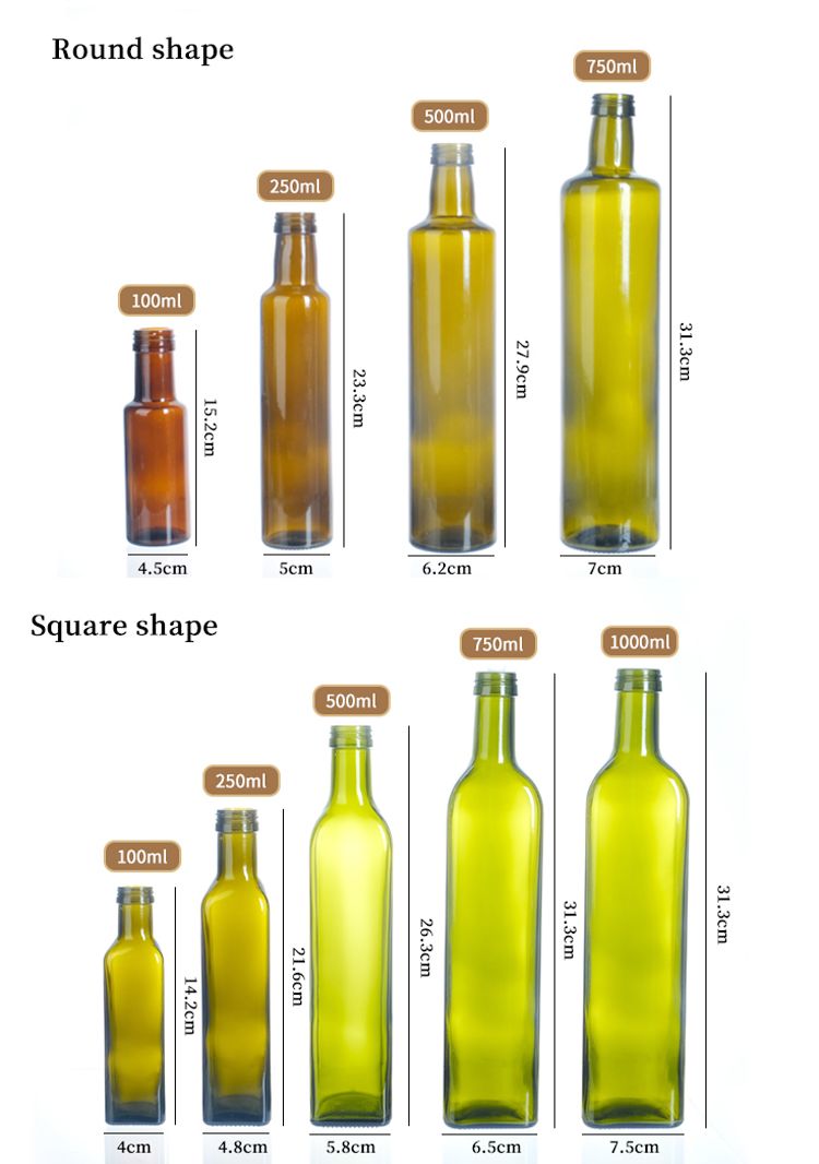 Custom food-grade olive oil glass bottle — round or square, leakproof design, plastic/aluminum cap. Showcase your brand with premium packaging.