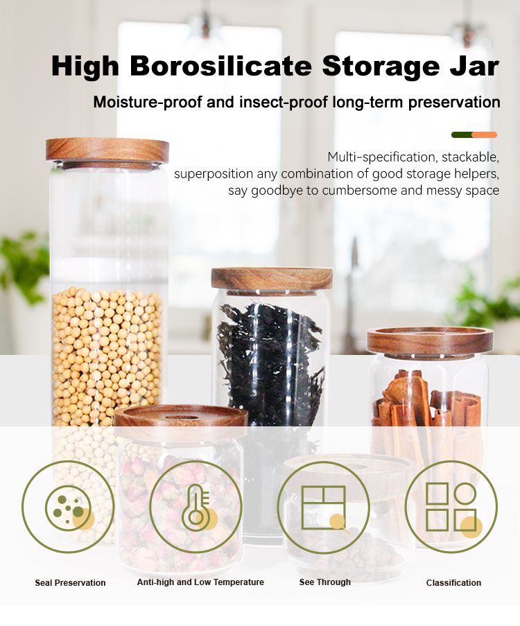 Glass Storage Bottle High Borosilicate Material — Wooden/Bamboo Lid Storage Jar keeps food fresh. Eco-friendly, heat-resistant, and beautifully minimal.