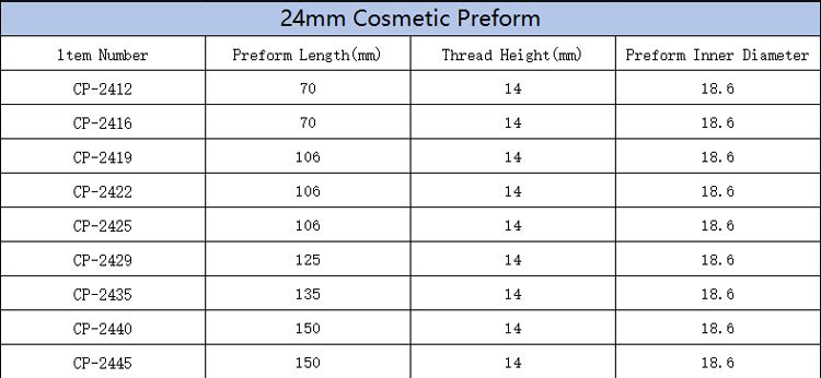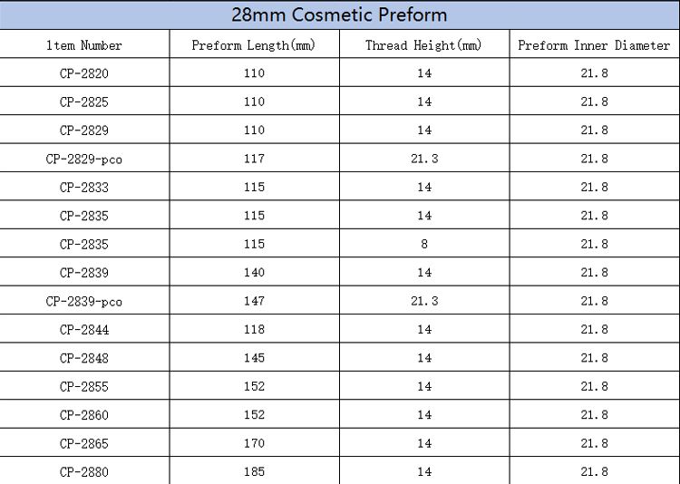High Quality Food Grade PET Cosmetic Preform 20-32mm Neck — customized for cosmetic bottles. BPA-free, durable, ready for mass production.